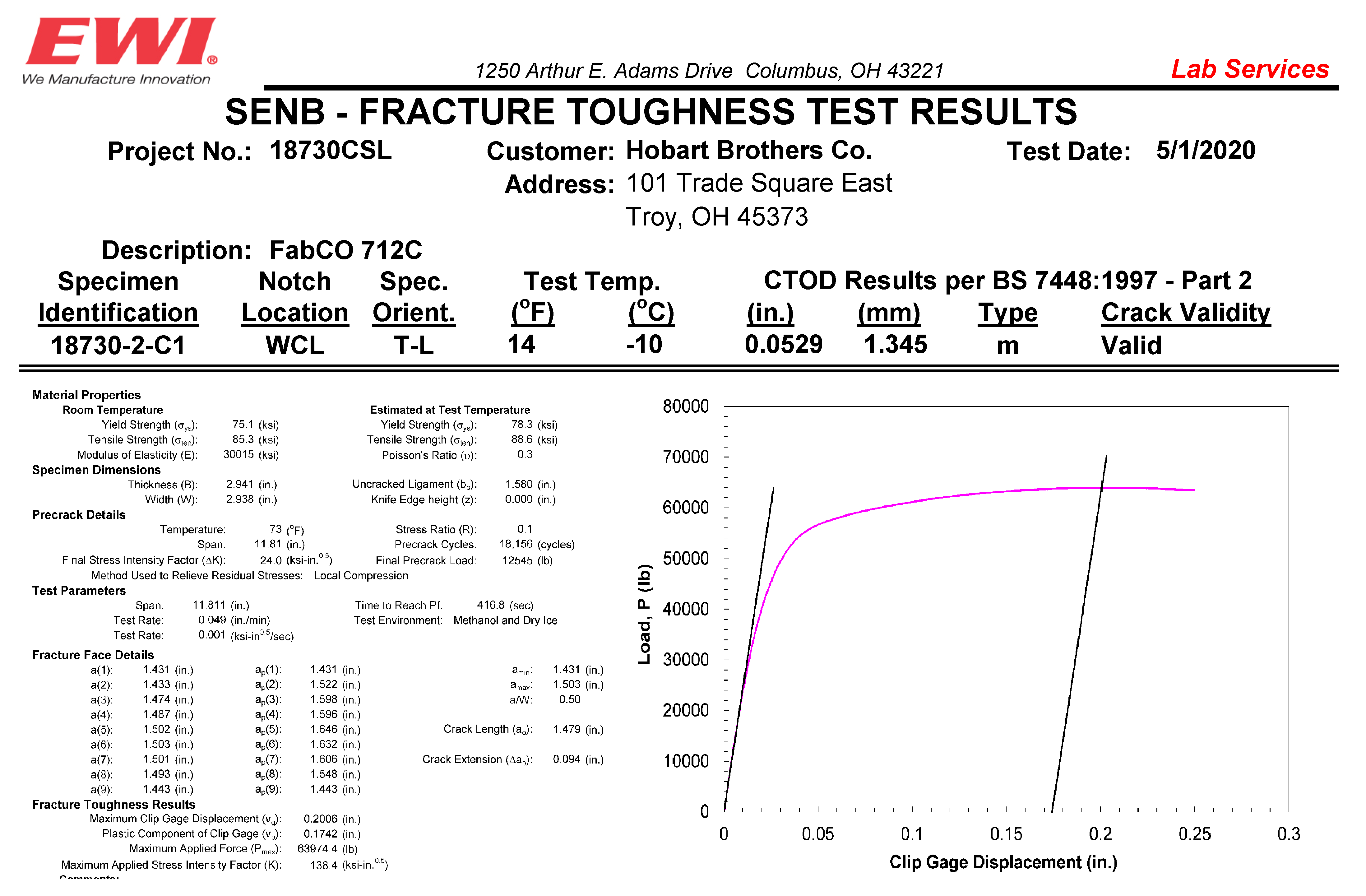 5、良好的焊后塑韧性能,可以满足客户对焊材CTOD性能要求。